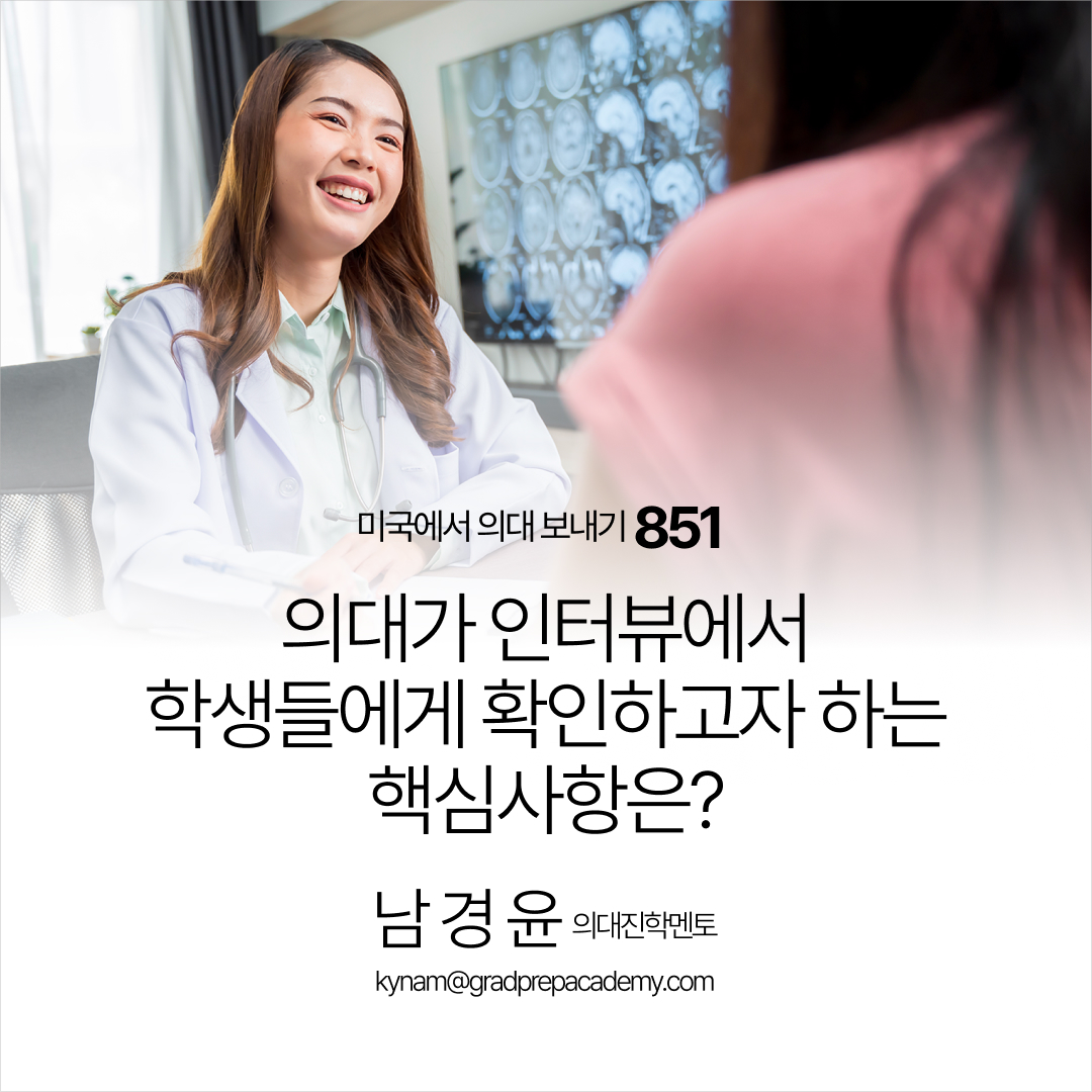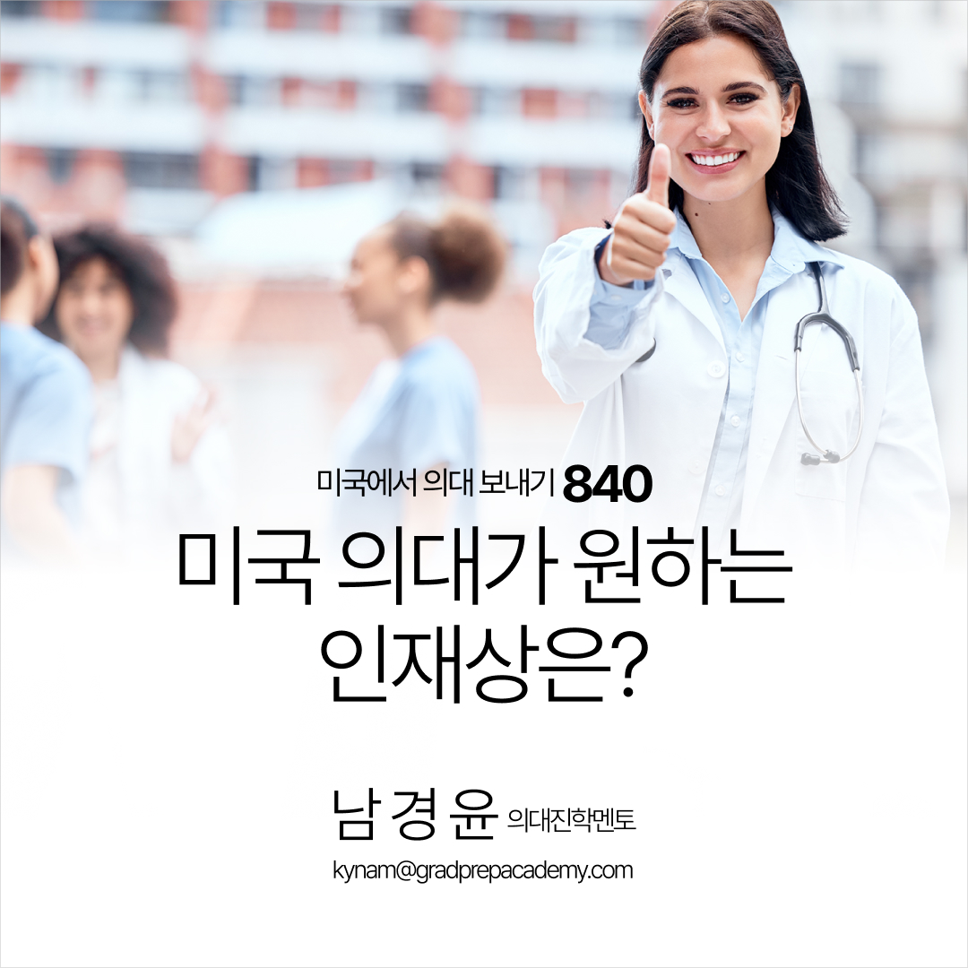 Grad Prep Academy의 남경윤 멘토가 매주 발표하는 ‘미국에서 의대보내기’는 미국 의대 진학을 준비하는 학생과 부모님을 위한 칼럼으로 2009년 2월부터 게재된 800여편의 칼럼이 있으며, 매주 새로운 칼럼이 소개 됩니다.