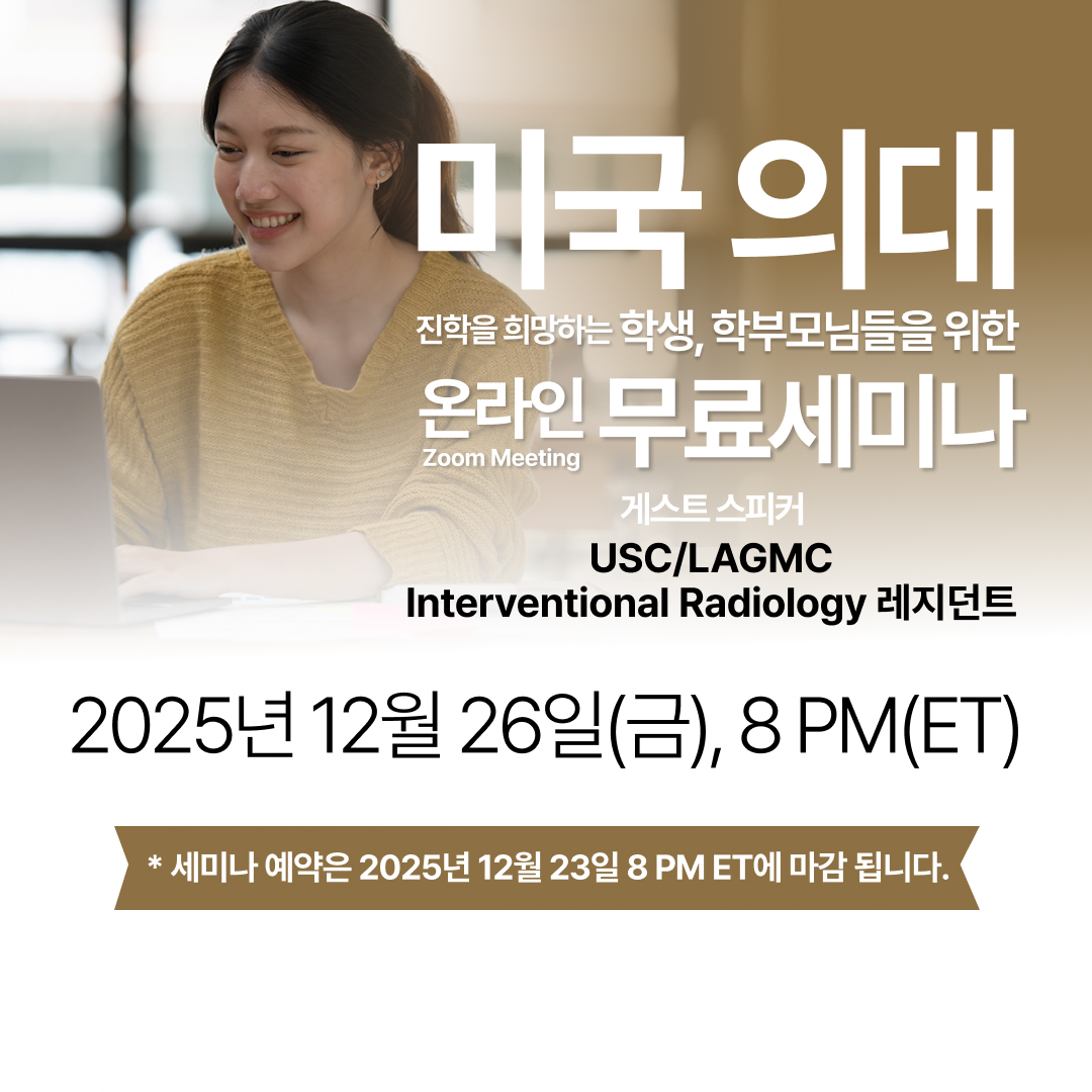 [참가신청] 2025년 12월 26일(금) 8:00PM(ET), 의대, 치대 진학을 희망하는 학생, 학부모님들을 위한 무료세미나